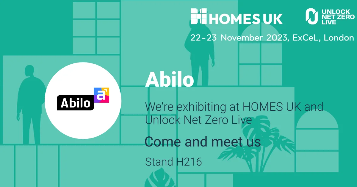 Abilo is exhibiting at the HOMES UK and Unlock Net Zero Live Expo, held at ExCeL London (Hall S6 - West Entrance) on Nov 22nd (09:00 to 17:30), and Nov 23rd (09:00 to 16:00).